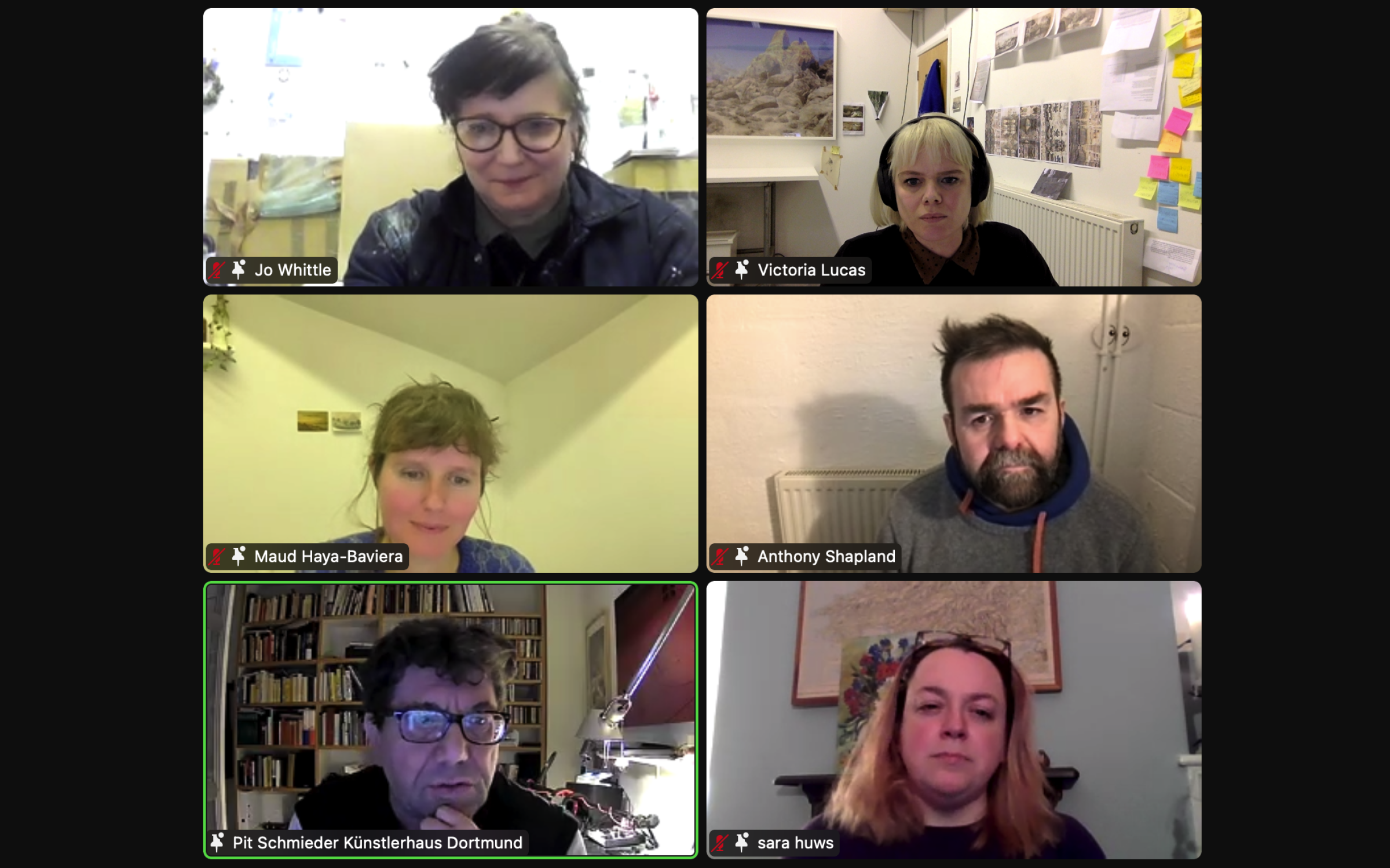 The Heavy Water Collective held an online In-Conversation event on 25th January 2023 to mark the end of a year-long residency, supported by a grant from the Four Nations International fund. In this session, Maud, Victoria and Joanna discussed their artistic research with Pit Schmieder from Künstlerhaus Dortmund, Anthony Shapland from g39, and Sara Huws from Cardiff University Special Collections.
