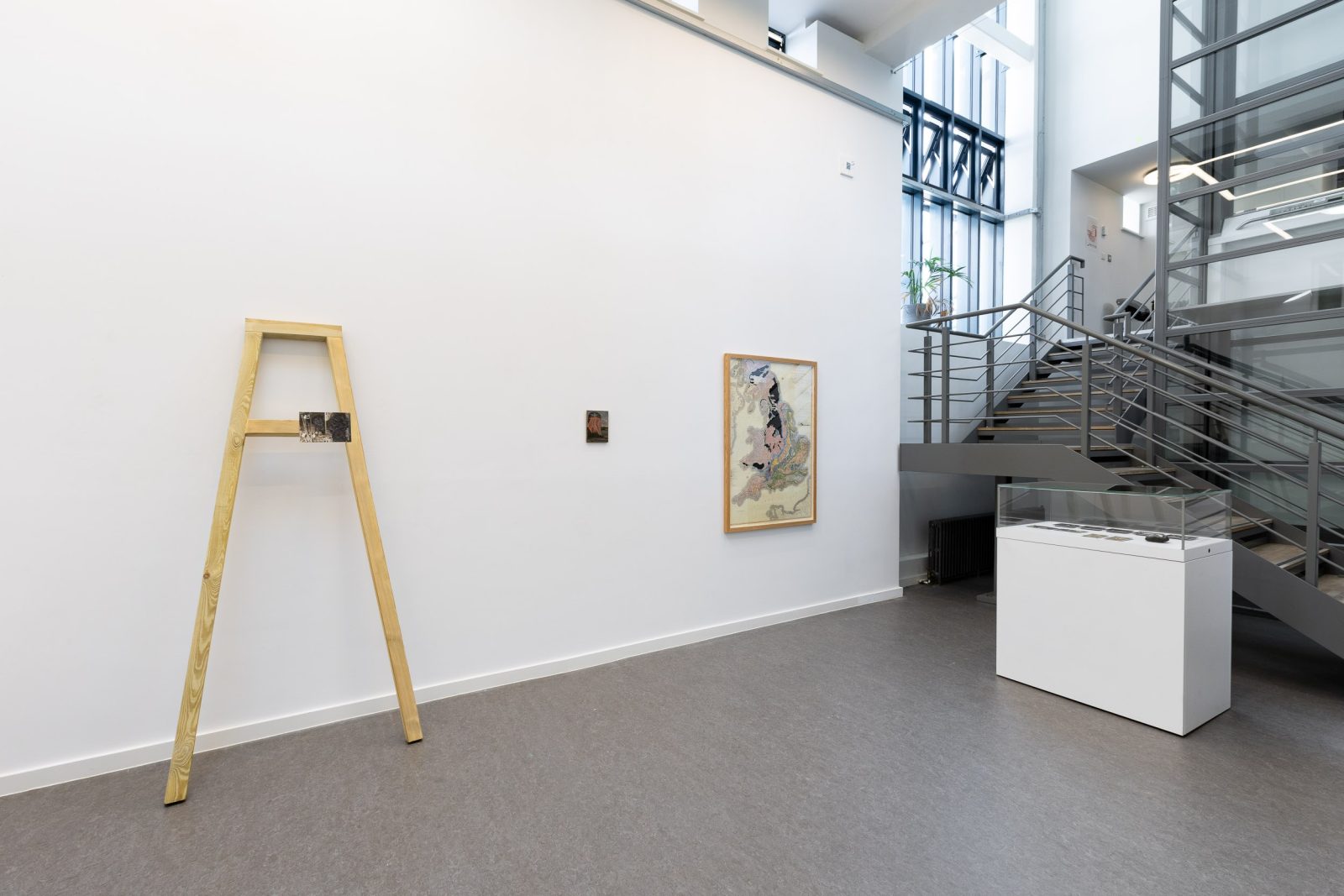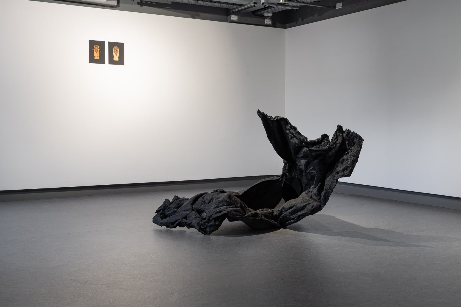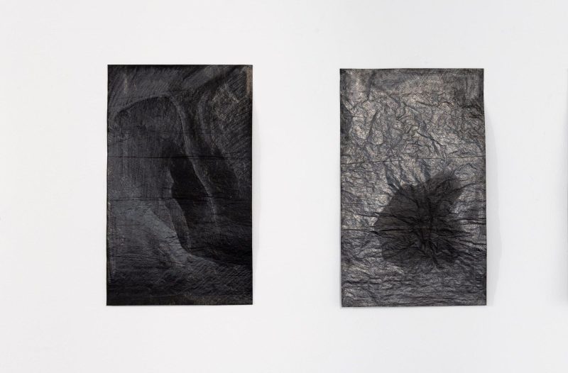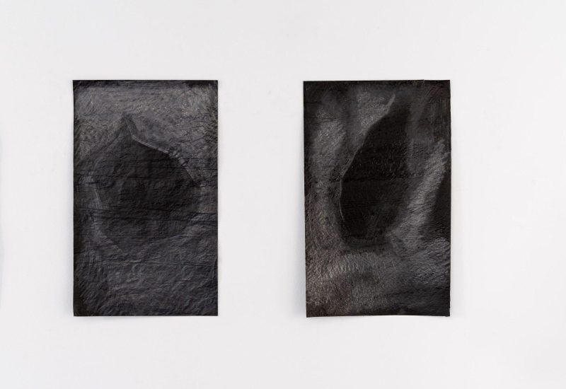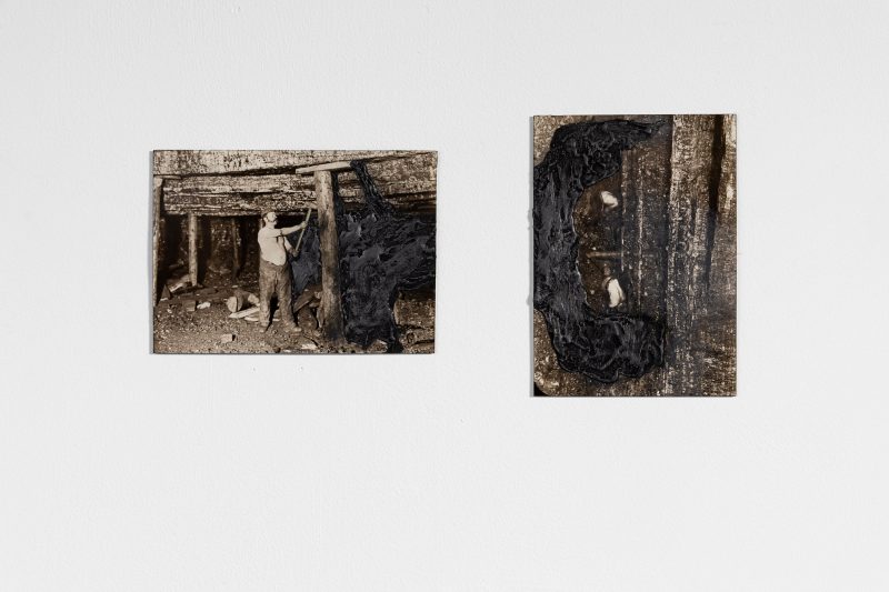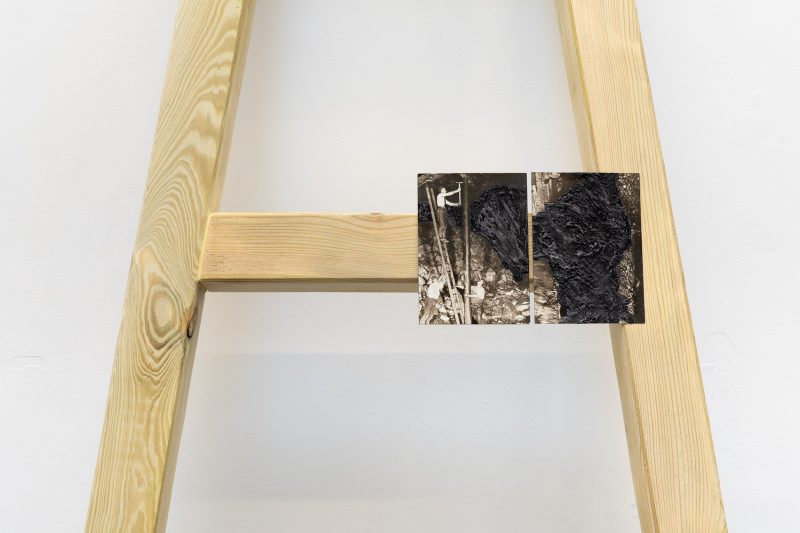 Lucas often engages with archival material through the geological landscapes they reference, as a process of making is initiated through site visits and her investigations of associated objects and stories. In the West Yorkshire Archive Service, Lucas came across a report published as part of the Thornhill Colliery Explosion Inquest in 1893, following a gas explosion at Combs Pit in Dewsbury, in which 139 men and boys lost their lives. Using an archival photograph, in addition to a wealth of interrelated material found at Heritage Quay, Lucas has been exploring the site of the pit as it is today, feeling her way through the wild undergrowth that has taken over this landscape of trauma.